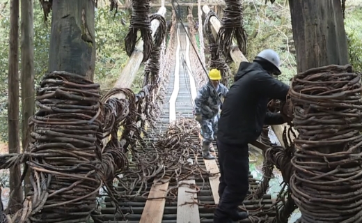 かずら橋は年間約30万人が渡る三好市を代表する観光名所です。3年に一度の架け替え作業に必要になる材料シラクチカズラの確保や、作業費に利用させていただきます。